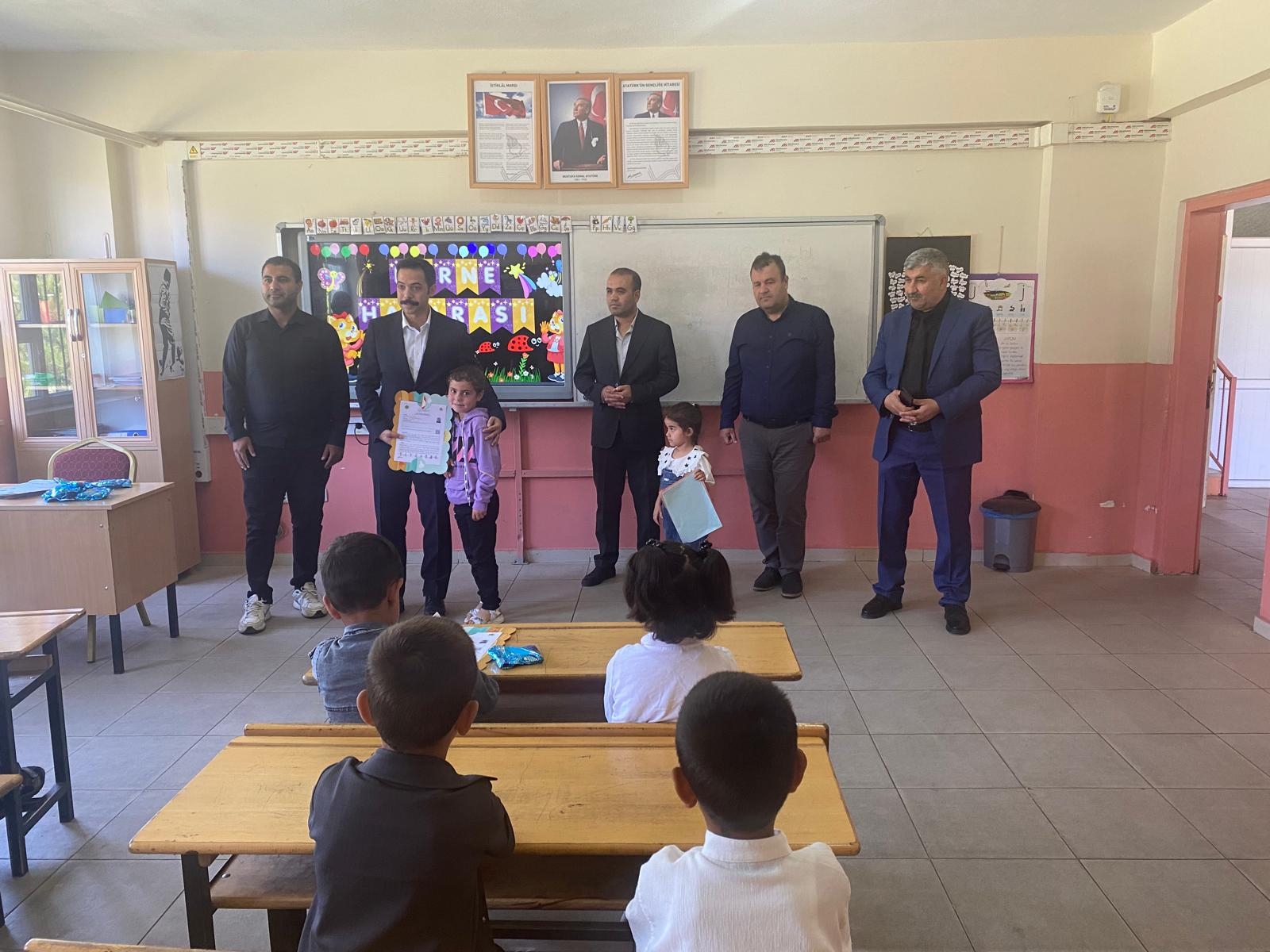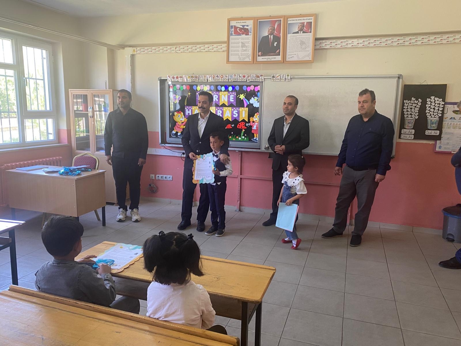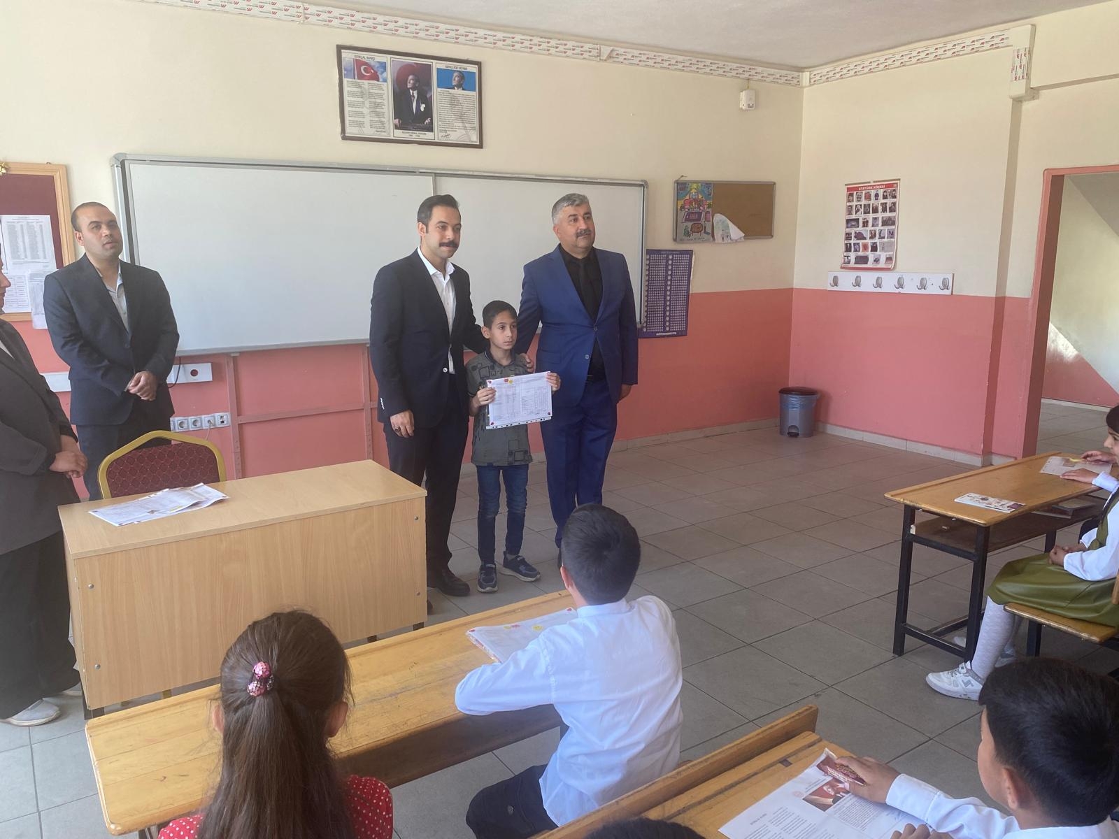İlçe Kaymakamımız Sayın Mehmet Zahid Uzun, İlçe Milli Eğitim Müdürümüz Sayın Abdulmuttalip Güneri ve şube müdürlerimizin katılımı ile Adnan Menderes İlkokulunda sene sonu karne töreni gerçekleştirildi.